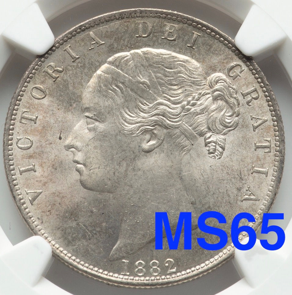 【MS65】ヴィクトリアヤングヘッド1/2クラウン銀貨 1882 NGC MS65